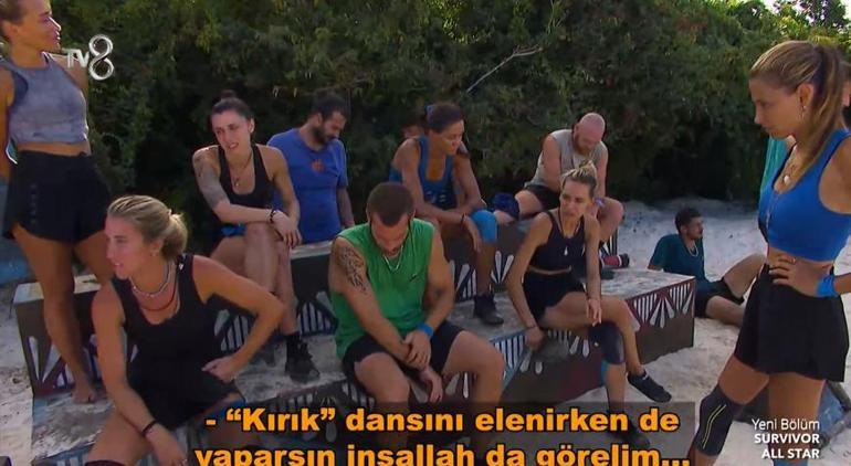 Kırmızı takımda zafer sonrası yapılan dans Mavi Takım'ın sinirlerini iyice gerdi. "Kırık" dansını elenirken de yaparsın inşallah da görelim giderken boyunu posunu. Kendine ağlaması gerekiyor, bugün Seda'yla yarışması gereken oydu sesleri geldi.