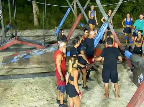 Kıyasıya geçen mücadelede Mavi takım Kırmızı takımı 12-10 geçerek dokunulmazlığın sahibi oldu.