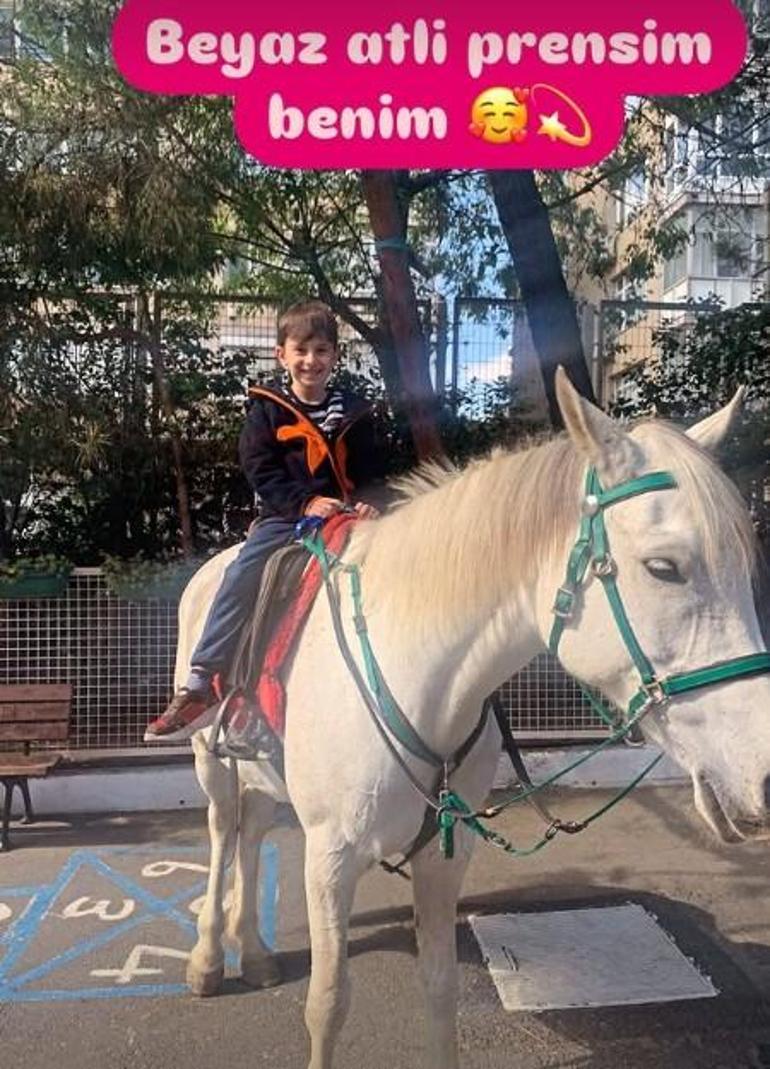Saka, oğlunun parktaki halini 'Beyaz atlı prensim benim' notuyla paylaştı.