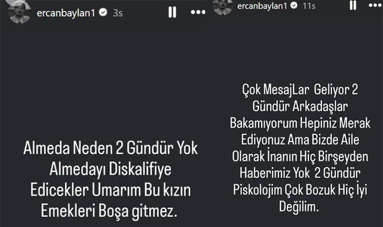 Çok mesajlar geliyor 2 gündür. Arkadaşlar bakamıyorum. Hepiniz merak ediyorsunuz ama bizde aile olarak inanın hiçbir şeyden haberimiz yok. 2 gündür psikolojim çok bozuk hiç iyi değilim. Almeda neden 2 gündür yok. Almeda diskalifiye edecekler. Umarım bu kızın emekleri boşa gitmez.