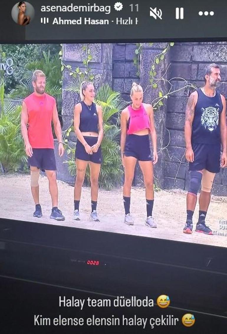 Eleme gecesini yakından takip eden Asena, düello öncesi 4 eleme adayının olduğu kareyi 'Halay team düelloda. Kim elense elensin halay çekilir' notunu düştü.
