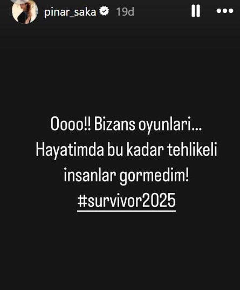 Pınar Saka, Poyraz'ın adaya veda etmesinin hemen ardından sosyal medyadan ''Oooo!! Bizans oyunları... Hayatımda bu kadar tehlikeli insanlar görmedim'' mesajını paylaştı.