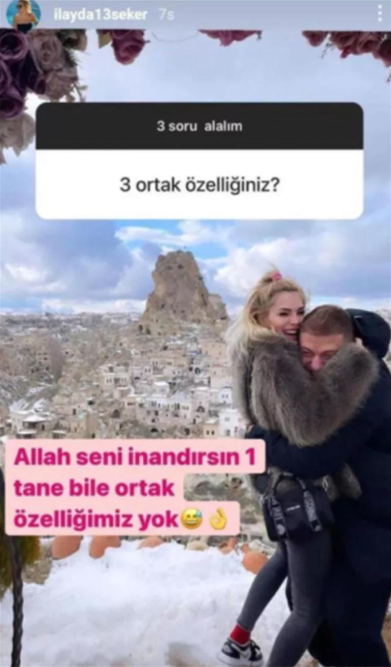 Aktif şekilde kullandığı Instagram hesabında sevgilisi ile verdiği pozları paylaşan Survivor İlayda, geçtiğimiz aylarda takipçilerinin sorularını yanıtlamıştı.Şeker, "Üç ortak özelliğiniz?" sorusuna, "Allah seni inandırsın, bir tane bile ortak özelliğimiz yok" yanıtını vermişti.