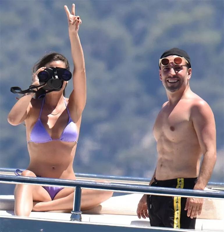 Teknenin güvertesinden dürbünle baktığı sırada gazetecileri fark eden ve sevgilisine gösteren Oğuzhan Koç, ellerini yana doğru açarak tebessüm etmişti. Daha sonra dürbünü alan Demet Özdemir, basın mensuplarına zafer işareti yaparak selam vermişti.