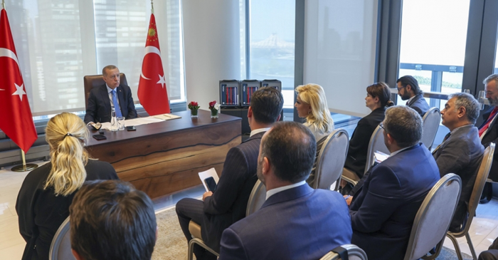 Genel Kurul görüşmelerine ilişkin detayları aktaran Erdoğan, "Bu yılki Genel Kurul genel görüşmeleri “İç İçe Geçmiş Sınamalara Dönüştürücü Çözümler İçin Dönüm Noktası” teması altında yapıldı. Dünyamızda önemli gelişmelerin, bilhassa ekonomi, gıda ve enerji gibi alanlarda ciddi sınamaların yaşandığı bir dönemde bu Genel Kurul gerçekleştirildi. Bu toplantı Ukrayna-Rusya savaşının ardından yapılan ilk Genel Kurul olması bakımından da ayrı bir önem taşıyor. Konuşmamda uluslararası barış ve güvenliği doğrudan ilgilendiren meseleler hakkındaki görüşlerimizi ortaya koydum. Aynı şekilde yaşanan adaletsizliklere, eşitsizliklere dünyanın kayıtsız kalma lüksünün artık kalmadığına dikkat çektim. SETA tarafından düzenlenen etkinlikte ABD’li düşünce kuruluşu temsilcileriyle bir yuvarlak masa toplantısı icra ettik. Burada da benzer görüşlerimi mevcut gelişmeler ışığında Türkiye’nin bölgesinde ve dünyada ne denli önemli bir rol oynadığını özellikle vurgulayarak tekrarladım. Kendilerinin de Türkiye’nin kritik rolünü ziyadesiyle müdrik olduklarını gördüm" diye konuştu.