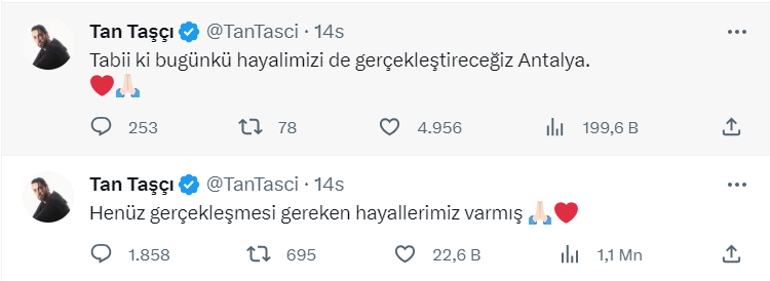 Popçu, ardından "Tabii ki bugünkü hayalimizi de gerçekleştireceğiz Antalya" diye yazdı. Taşçı, konser sonrası Antalya'daki hayranlarına teşekkür etmeyi de ihmal etmedi.