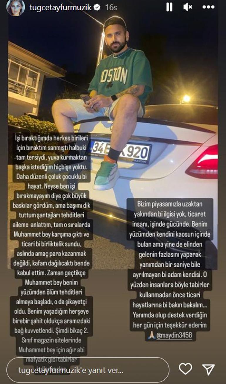 "Zaman geçtikçe Muhammet Bey benim yüzümden ölüm tehditleri almaya başladı. O da şikayetçi oldu. Benim yaşadığım her şeye birebir şahit oldukça aramızdaki bağ kuvvetlendi. Şimdi bir kaç ikinci sınıf magazin sitelerinde Muhammet Bey için 'ağır abi, mafyatik' gibi tabirler kullanmışlar."