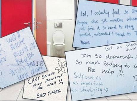 Öğrenciler duvarlarasınavlar, siyasi olaylargibi konular hakkında yazılar yazıyor.Yazıların çoğudiğeröğrencilere cesaret veya insanların birbirlerine kendi zihinsel sağlıkları hakkında güncel bilgiler veren sözleriçeriyor.