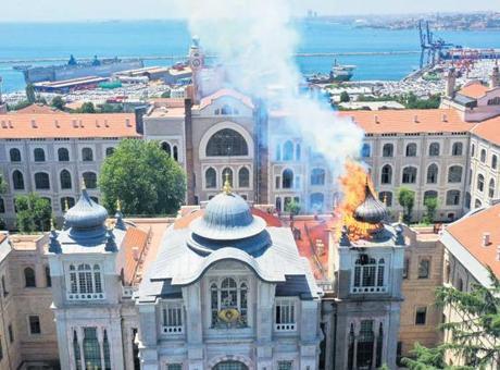 İtfaiye ekipleri yangına müdahale ederken, binanın kubbesi alevlerin etkisiyle düşerek parçalandı. Ekipler, parçalara ayrılarak yanmaya devam eden kubbedeki alevleri veyangınısöndürdü.Bina 121 yıl önce Mekteb-i Tıbbiyye-i Şâhâne adıyla inşa edilmişti.● İSTANBUL Milliyet