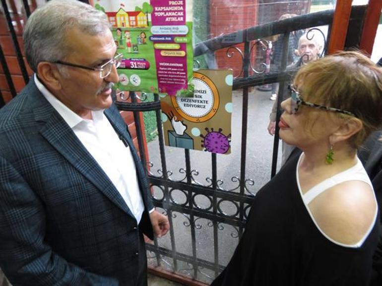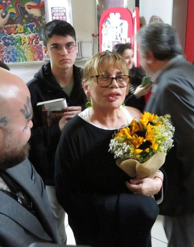 Bir hayranının verdiği çiçeği alan 68 yaşındaki Sezen Aksu, aracına binerek okuldan ayrıldı.