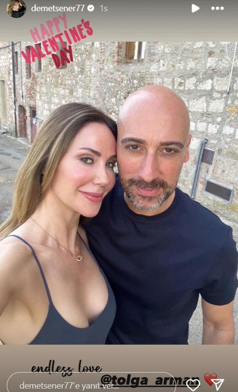 Uzun süredir iş insanı Tolga Arman ile aşk yaşayan manken Demet Şener, sevgilisiyle fotoğrafını takipçilerinin beğenisine sunarak; "Sevgililer Günü kutlu olsun olsun... Sonsuz aşk" notunu yazdı.