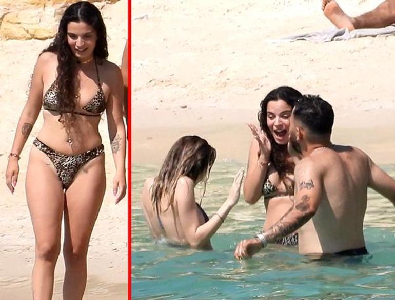 Leopar desenli bikinisi ile uzun süre denizde kalan oyuncu, daha sonra arkadaşları ile restoran kısmına geçti ve yemek yiyerek vakit geçirdiler.