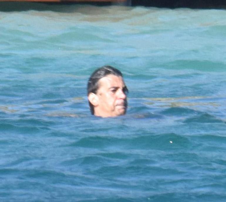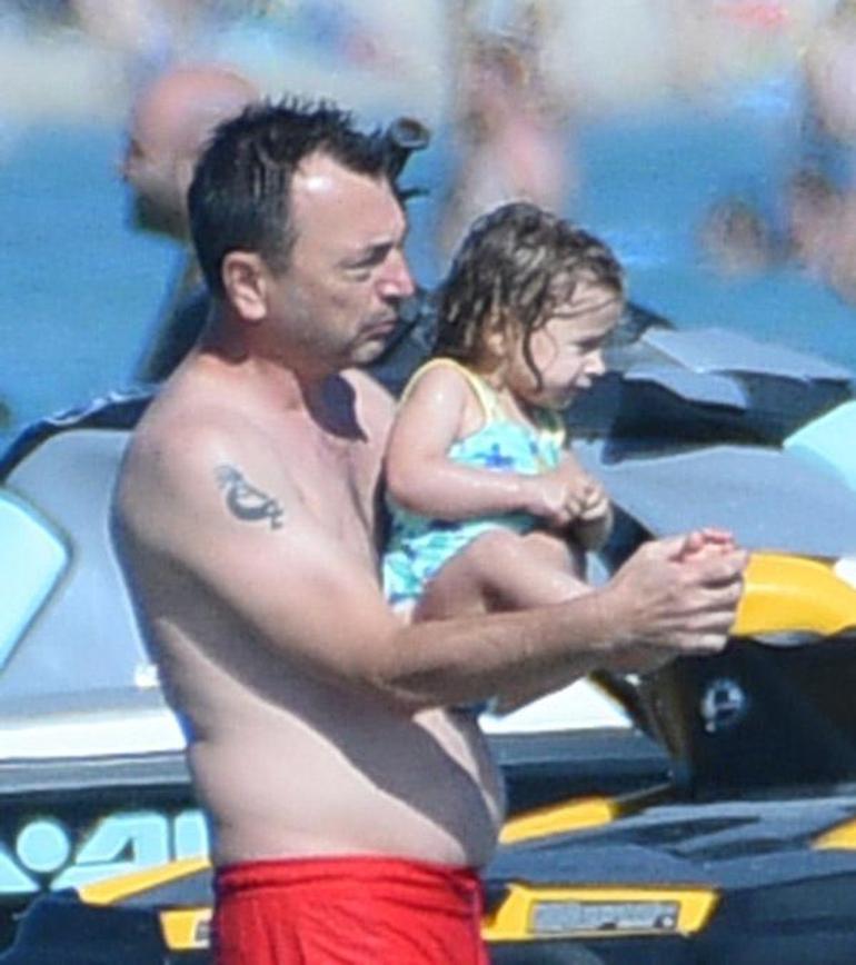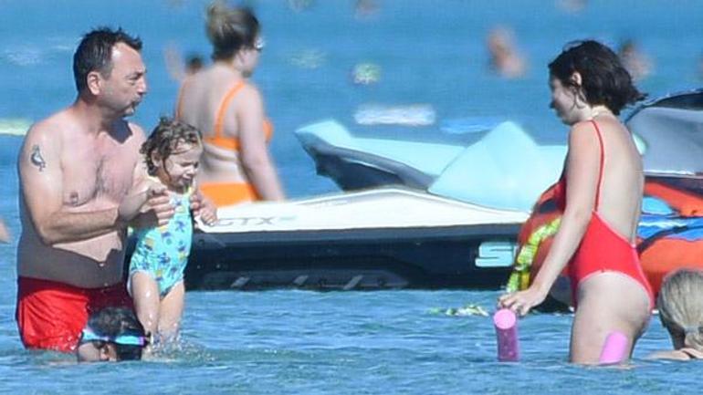 Kendileri sırayla yüzdükten sonra minik kızlarını da yüzmeye alıştıran çift, soğuk suda çocuklarını hasta etmemek için denizde çok fazla kalamadı. Usta yönetmen, kızının üşüyen ayaklarını avucunun içine alarak ısıtmaya çalıştı.