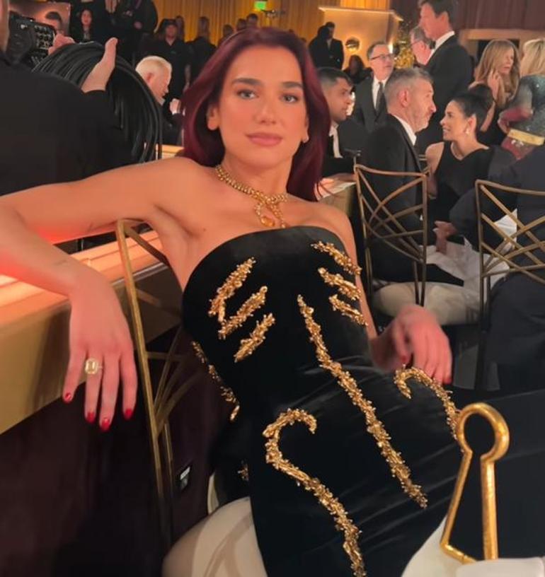 Lipa, geçtiğimiz gün 88.5 milyon takipçisi bulunan Instagram hesabından peş peşe fotoğraflar ve videolar yayınlayarak; Altın Küre tarzının perde arkasını paylaştı.