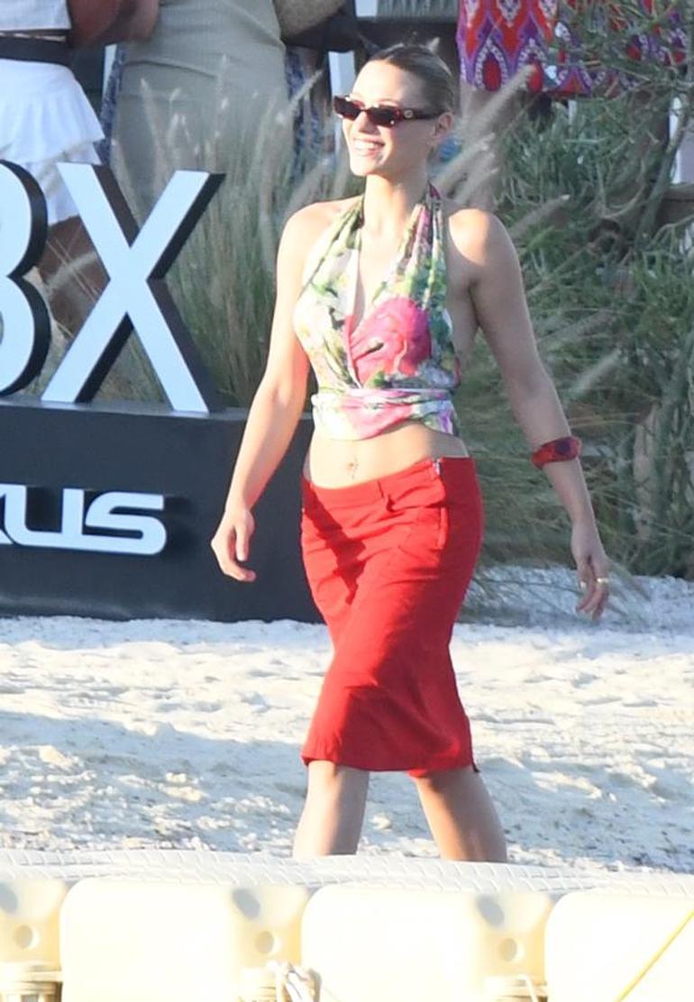 Sümeyye Aydoğan gün boyu dışarı çıkmayı tercih etmeyerek gün sonundaki etkinliğe katılarak sahilde poz verdi.