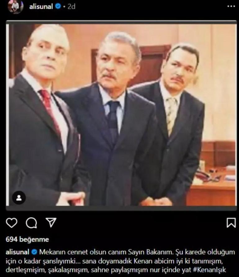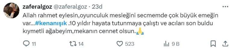 Allah rahmet eylesin, oyunculuk mesleğini seçmemde çok büyük emeğin var. Kenan Işık, 10 yıldır hayata tutunmaya çalıştı ve acıları son buldu kıymetli ağabeyim, mekanın cennet olsun.