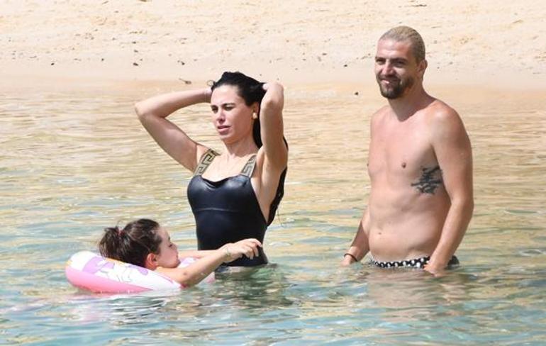 Önceki gün ailece Dalyan'daki ünlü bir plajda görüntülenen ünlü çift, ailece denizin keyfini çıkardı. Kızları Mihran Ela ile birlikte zaman geçiren ikili, uzun süre denizden çıkmadı.