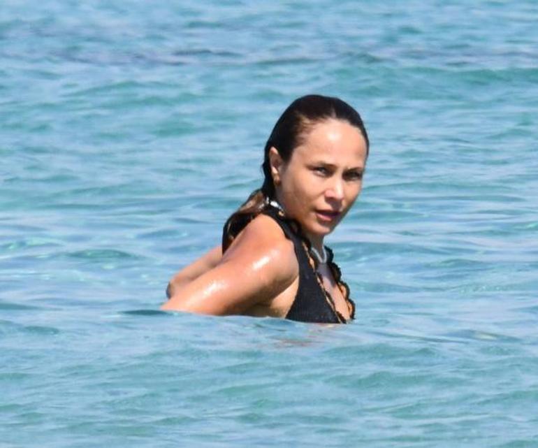 Ünlü isim, iskelenin merdivenlerinden inerek kendiniz Bodrum'un serin sularına bıraktı. Şarkıcı, denizin keyfini çıkararak bol bol yüzdü.