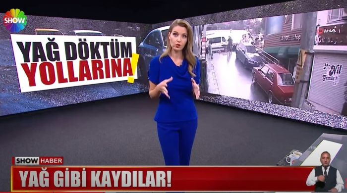 Show TV’nin 5 Eylül’deki ana haber bülteninden bir haber bu. Önce ekranda “Yağ döktüm yollarına” ve “Yağ gibi kaydılar” yazısı belirdi. Ardından Pınar Erbaş Ersoy, haberi şöyle sundu: