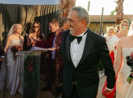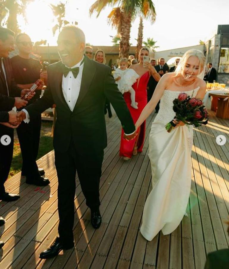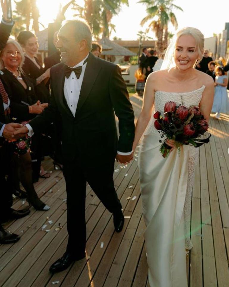 Sahilde gerçekleştirilen sade nikah töreninde çiftçin nikah şahitleri arasında Oktay Kaynarca ve Elif Buse Doğan yer aldı.
