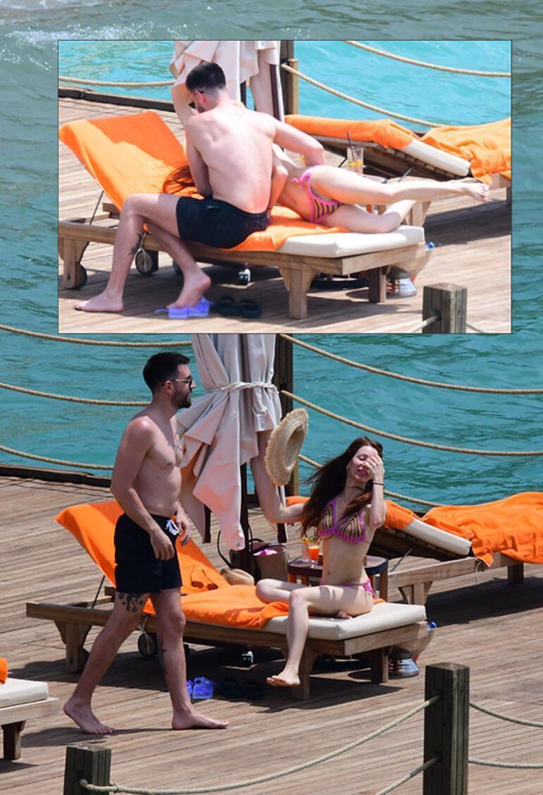 Çağlar Ertuğrul ve Kayla Manukyan, uzun bir süreden sonra haziran ayında Bodrum Torba’da bir otelin iskelesinde düşman çatlatmıştı. İskeleye ayrı ayrı gelen sevgililer uzun süre güneşlenmişti.