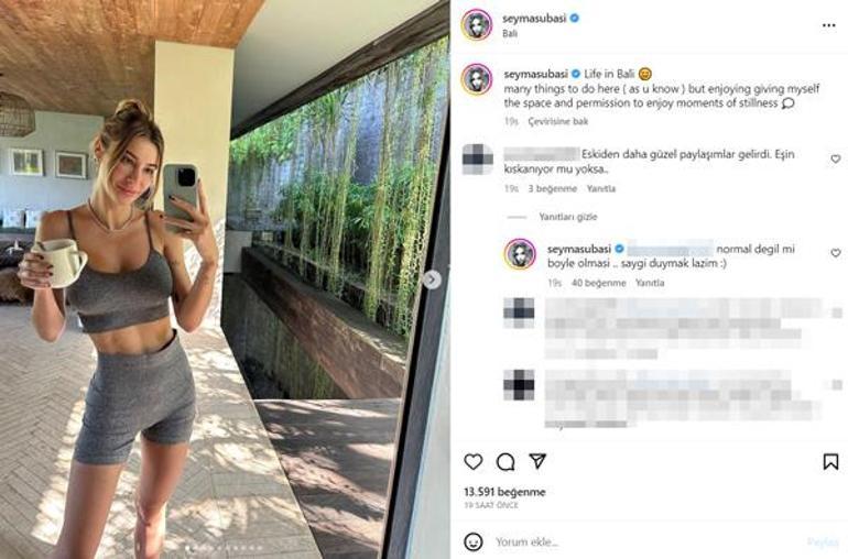 2.9 milyon takipçisi bulunan Instagram hesabından, "Bali'de hayat... Burada yapılacak çok şey var (bildiğiniz gibi) ama kendime durgun geçen anların tadını çıkarmak için yer ve izin vermekten keyif alıyorum" mesajıyla birlikte peş peşe fotoğraflar paylaşan Subaşı; kısa sürede binlerce beğeni ve yorum aldı.