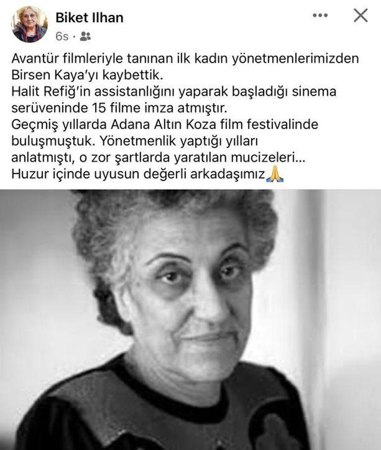 Birsen Kaya, 81 yaşında hayatını kaybetti. Sanatçının vefatını yönetmen ve yapımcı Biket İlhan duyurdu. Biket İlhan yaptığı açıklamada;"Avantür filmleriyle tanınan ilk kadın yönetmenlerimizden Birsen Kaya'yı kaybettik. Halit Refiğ'in asistanlığını yaparak başladığı sinema serüveninde 15 filmle imza atmıştır. Geçmiş yıllarda Adana Altın Koza Film Festivali'nde buluşmuştuk. Yönetmenlik yaptığı yılları anlatmıştı, o zor şartlarda yaratılan mucizeleri... Huzur içinde uyusun değerli arkadaşımız" dedi.