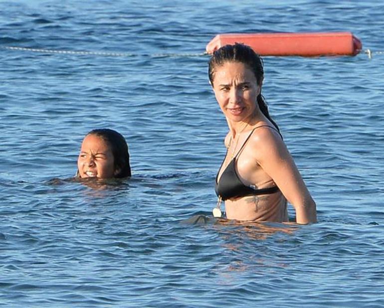 Kahkahaları plaja kadar ulaşan ve oldukça neşeli olduğu dikkatlerden kaçmayan ünlü isim, kusursuz fiziğiyle de dikkatleri üzerinde toplamayı başardı.