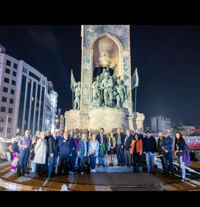 Prof.Dr. İlber Ortaylı’nın da, iki oturumdan oluşan ve sabahki oturumunda konuşması olan hocamız, daha önceki konuşmalarında, hiçbir yerde doğru dürüst bir proje yok, demişti. Kendisi bizzat projenin içinde yer aldığı için bizde kendi onayımızı teyit edebiliriz. Şimdiye kadar düzenlenmiş en iyi program ile karşı karşıyayız. Sabah erken saatlerde, İstanbul Tepebaşı İtalyan Kültür Merkezi Binasında başlayan etkinliğimiz, akşam saatler neredeyse 19.00’u gösterdiğinde, tüm çalıştaya katılan konuşmacılar, tüm halk ve yetkililer ile birlikte son durağımız, Taksim anıtının önündeydik. Toplu fotoğraf sonrası bir grup İtalyanca, bir grup Türkçe olarak anıtın kimliğini, sembollerini dinlemeye başladı.