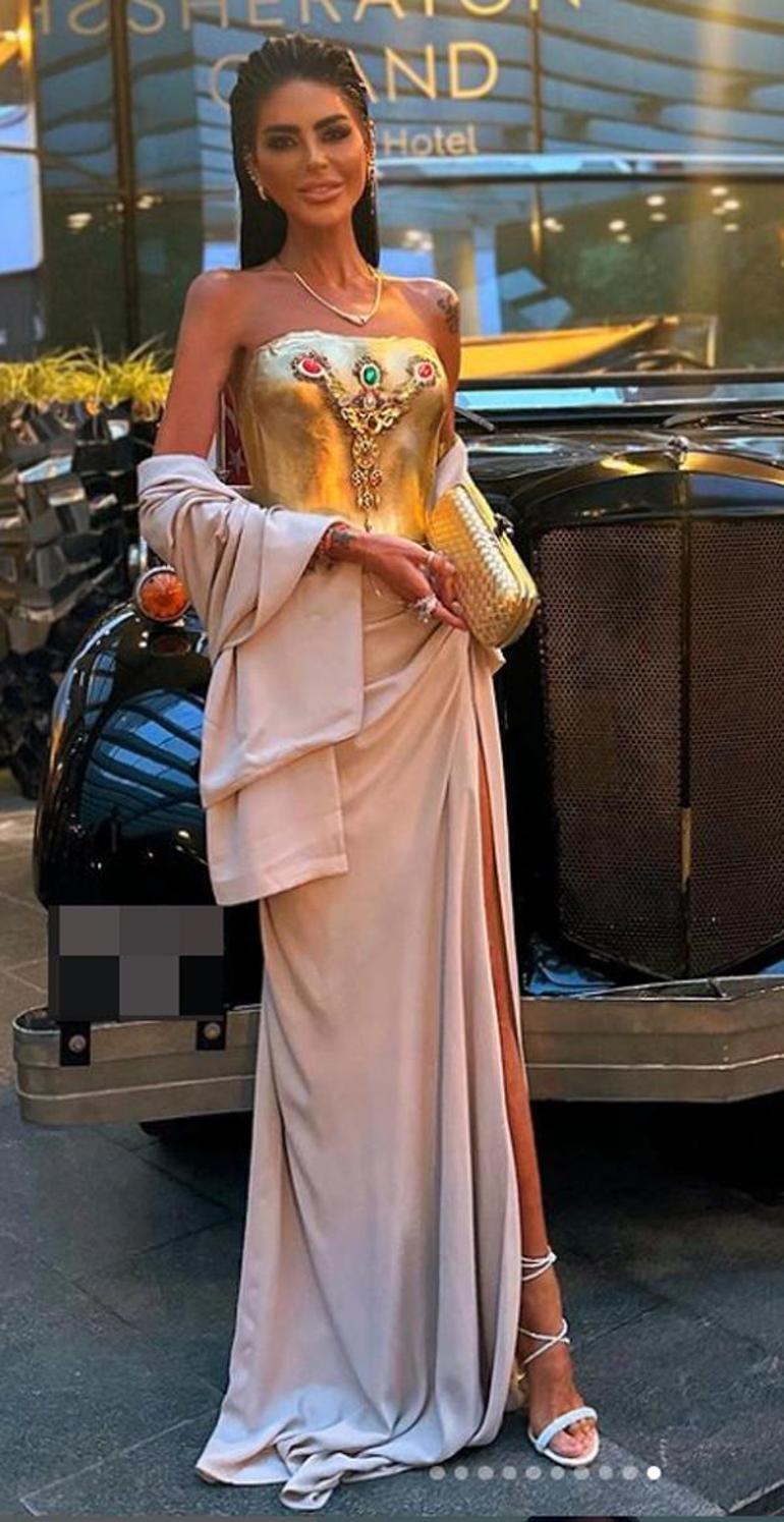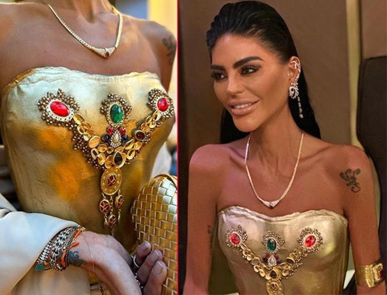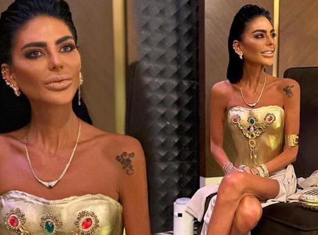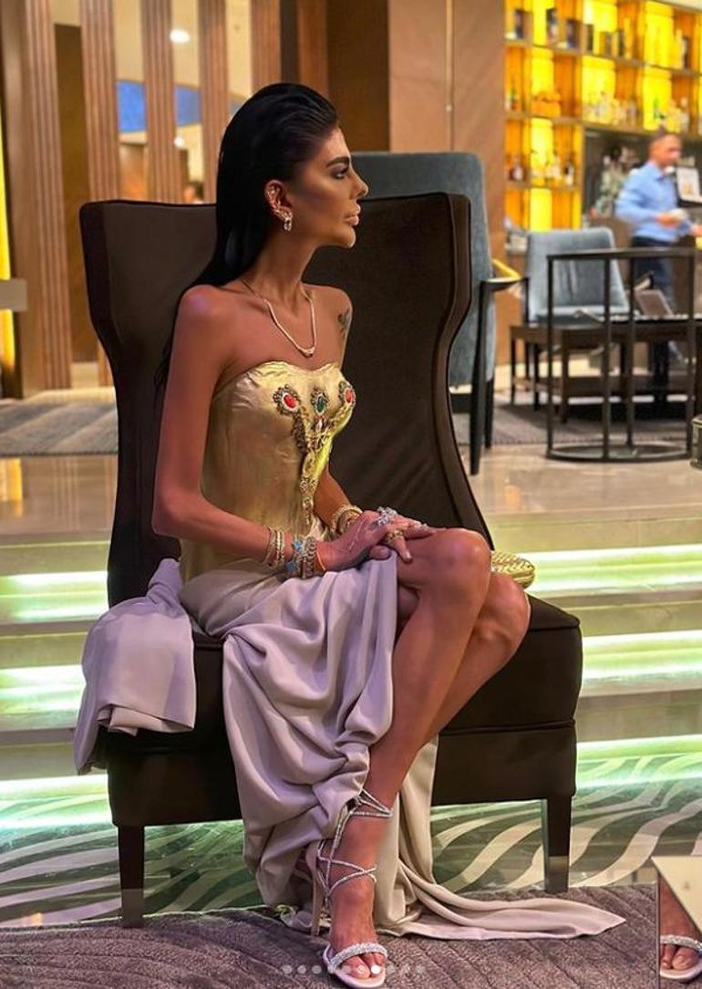Zayıflığıyla herkesi şaşkına çeviren 39 yaşındaki Yalçın, son olarak altın kaplama elbisesiyle gündeme geldi.