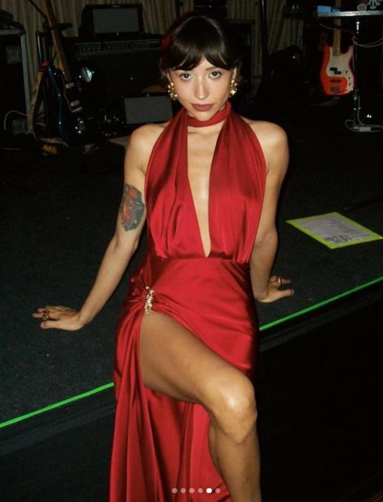 Bacak ve göğüs dekolteli kırmızı elbisesiyle kamera karşısına geçen 30 yaşındaki şarkıcı, peş peşe paylaştığı karelerine; "Herkese mutluluklar dilerim" mesajını yazarak, gül emojisi ekledi.